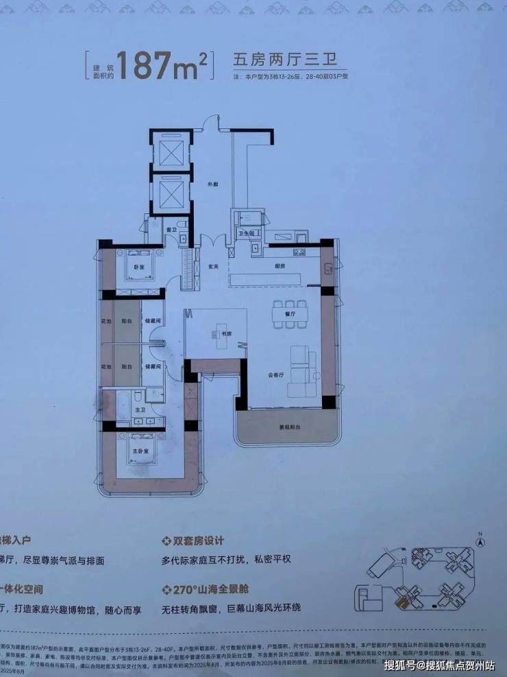【梯 户 比】4梯5户(低区)/4梯4户(高区)、建面约125㎡以上专梯专户
