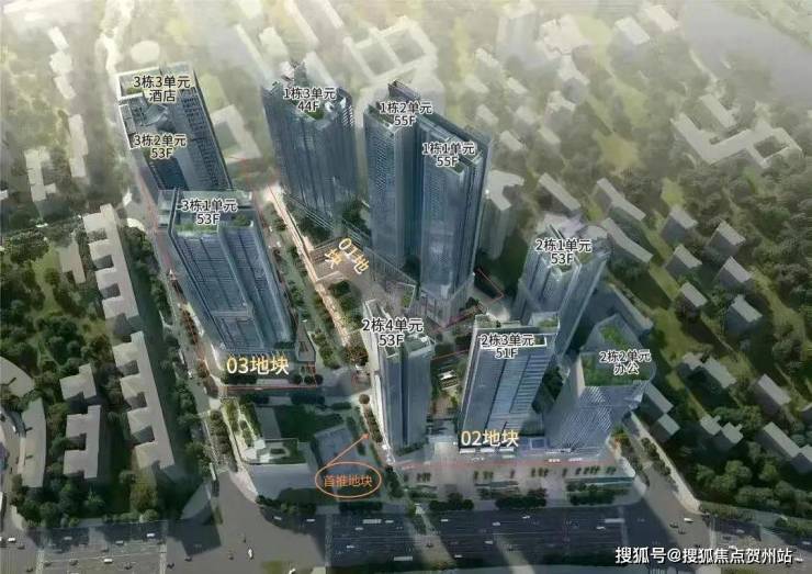规划为4栋超高层塔楼,2栋一单元住宅174米53层,2栋二单元办公130米27层,2栋三单元住宅168米51层,2栋4单元住宅175米53层。