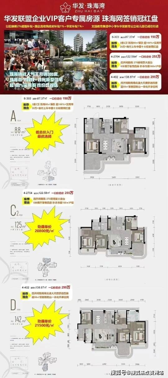 折扣与优惠:认筹 20 万享优先选房 + 开盘 98 折;全款叠加 1% 折扣,按揭赠 3 年物业费;华发老业主、教师 / 医护人员额外 0.5% 优惠;支持香洲 “以旧换新”,叠加政府 1%+ 华发 1%“双补贴”。
