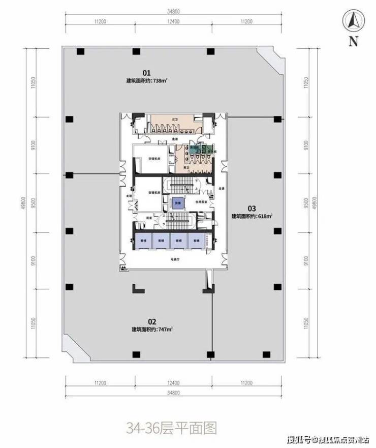 高区标准层面积约2100-2155㎡;