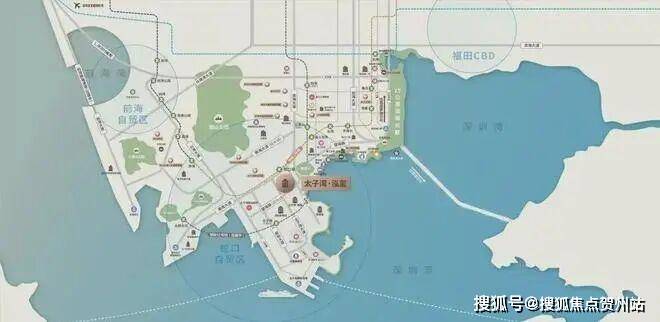 太子湾片区规划总建筑面积约170万㎡,总占地约69万㎡,汇集办公、居住、商业、艺术中心、酒店等多元业态。以“一湾三坊城中城”概念打造布局,在独一无二的太子湾滨海区,汲取山、海、城三大元素,构建高端“居住坊”、“商业坊”、“港务坊”。凭借独树一帜的规划与强大的枢纽功能,成就高端元素集萃纷呈的“城中之城