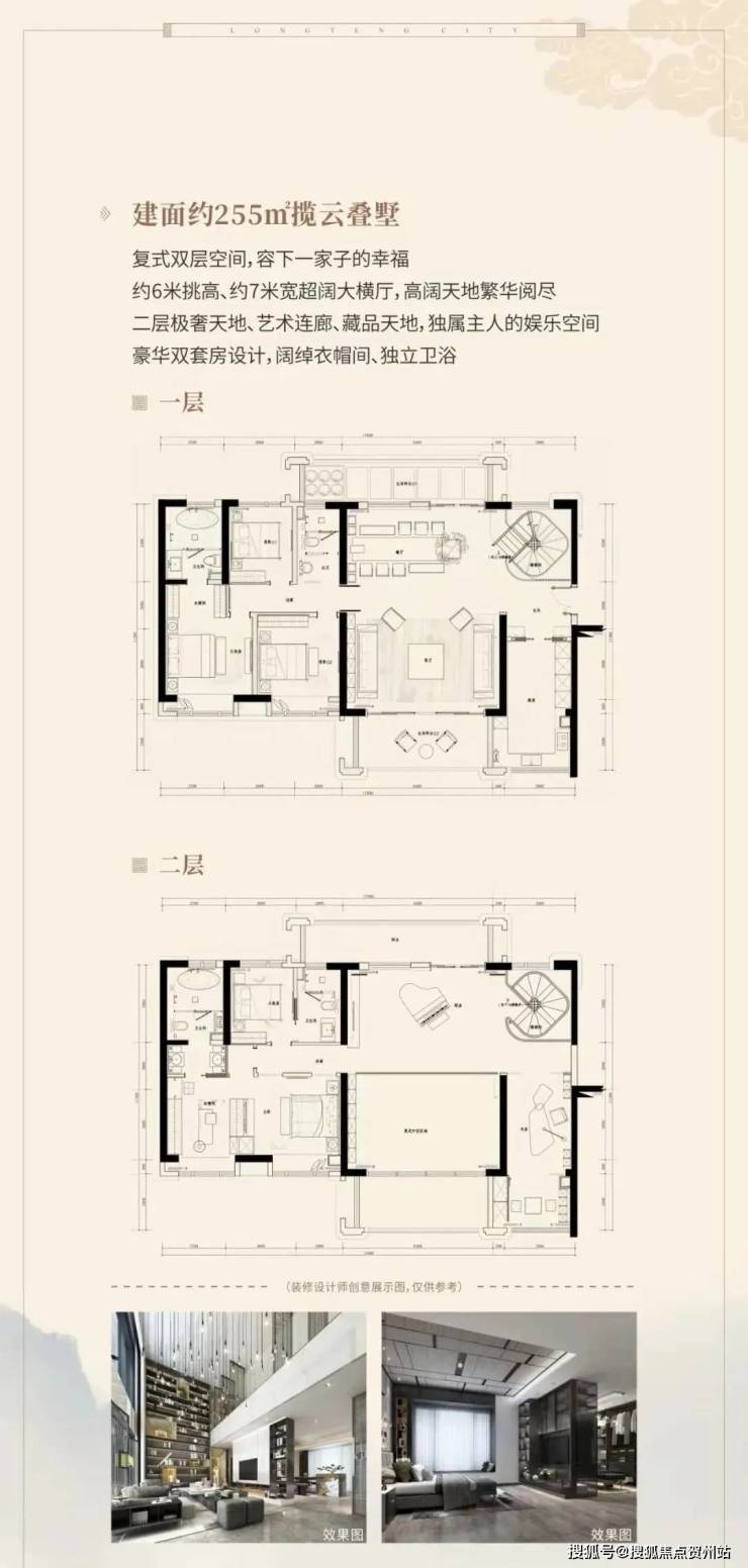 建面约440-837㎡国风院墅(总价约800万-2500万/套),建面约239-255㎡揽云叠墅(总价约500万-600万/套)