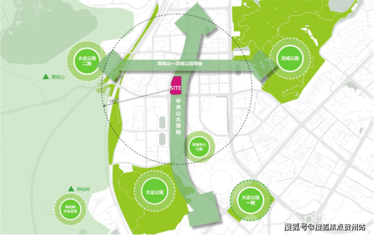 休闲配套:坐享大运公园(约418万㎡)、龙城公园(约189万㎡),环境优美,绿化率超50%,绿化率是福田中心的5倍、前海中心的4倍,是深圳首个“国家级生态示范区”。