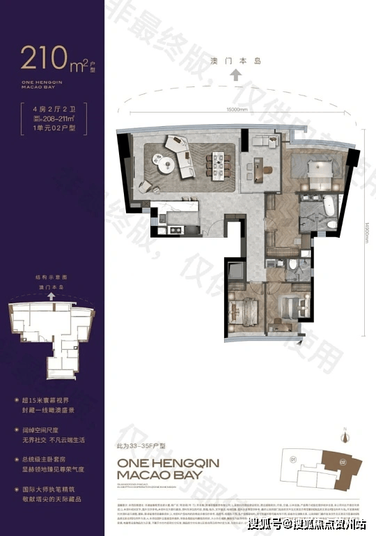 · 位置:横琴粤澳深度合作区荣港道 271 号,金融岛岛尖核心,紧邻 1.3KM 黄金海岸线,无遮挡眺望澳门城市景与海景。