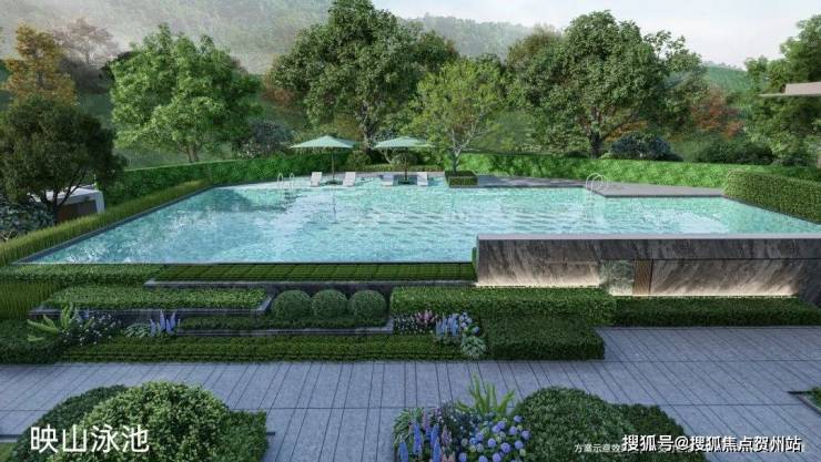 映山泳池:隐奢酒店度假感引入,巧妙将远处山景映入眼底,打造不过时的经典。