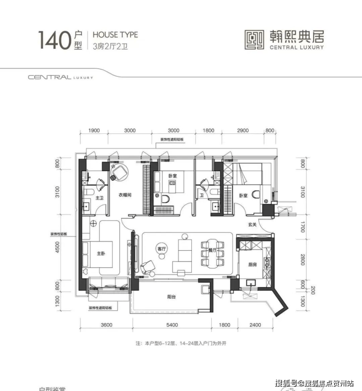 建面约140㎡的3房2厅2卫,该户型为 02 地块的唯一一条腿,非常稀缺。户型南北通透,带大主卧套房的奢居型三房。带 5.4m 观景台,大横厅奢阔空间设计,主卧同客厅阳台、餐厅三面宽朝西南。北向双次卧、双卫生间、拓展空间共五面宽一字排开,视野全面俯瞰社区内园林,静谧舒适。