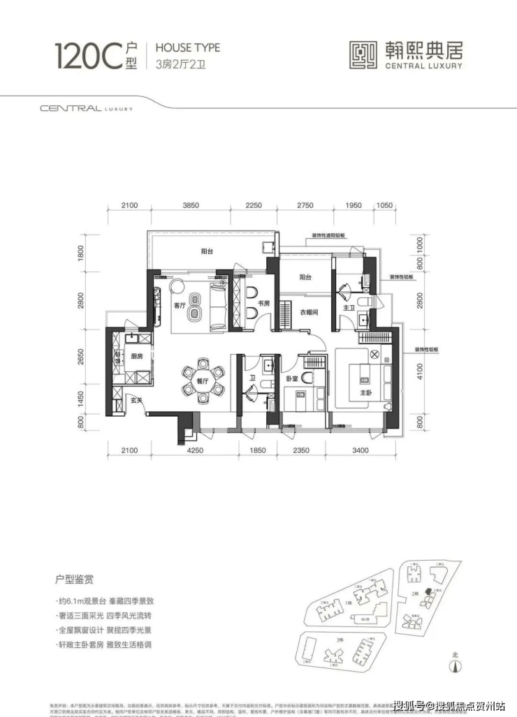 建面约120㎡的3+1房2厅2卫,折后总价:1038—1419万