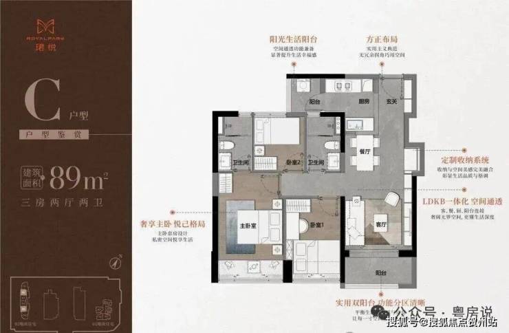 【89㎡三房二卫】