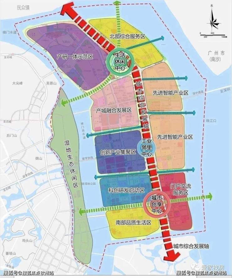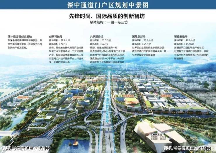 从功能上,该片区以创新驱动城区,以优质景观带串联多种产业平台,构建「深中通道智创发展轴、创享科技岛、共享服务坊、国际总部坊以及智能制造坊」的“一轴两湾,一岛三坊”新价值格局,再造一座科技岛,加速深中融城。