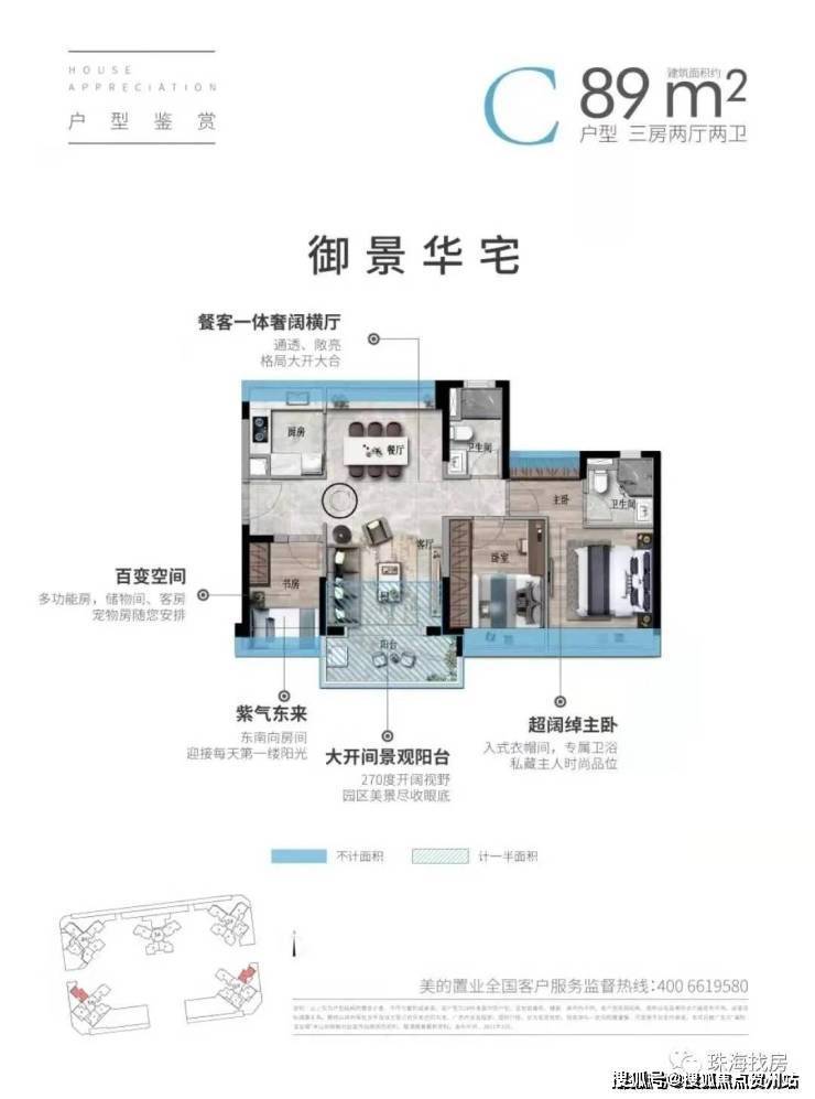 ■ 89㎡三房两厅两卫人性化设计,功能独立方便实用厅出阳台设计,享园林四季美景超高赠送面积,创意空间随心享