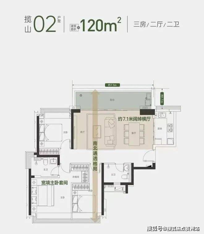 建面约 120 ㎡ 02户型 3房2厅2卫