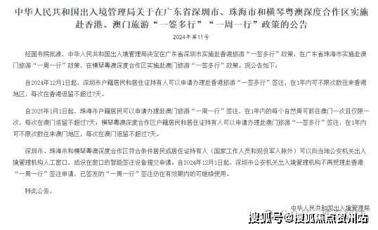 自2025年1月1日起,横琴粤澳深度合作区户籍居民和居住证持有人可以申请办理赴澳门旅游“一签多行”签注,在1年内可不限次数往来澳门地区,每次在澳门逗留不超过7天,一签多行” 便利政策的实施,将促进琴澳两地文旅资源进一步融合发展