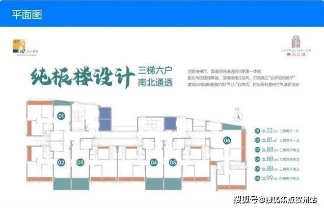 户型区间:72-99㎡三至四房,精装交付,实用率领先市场