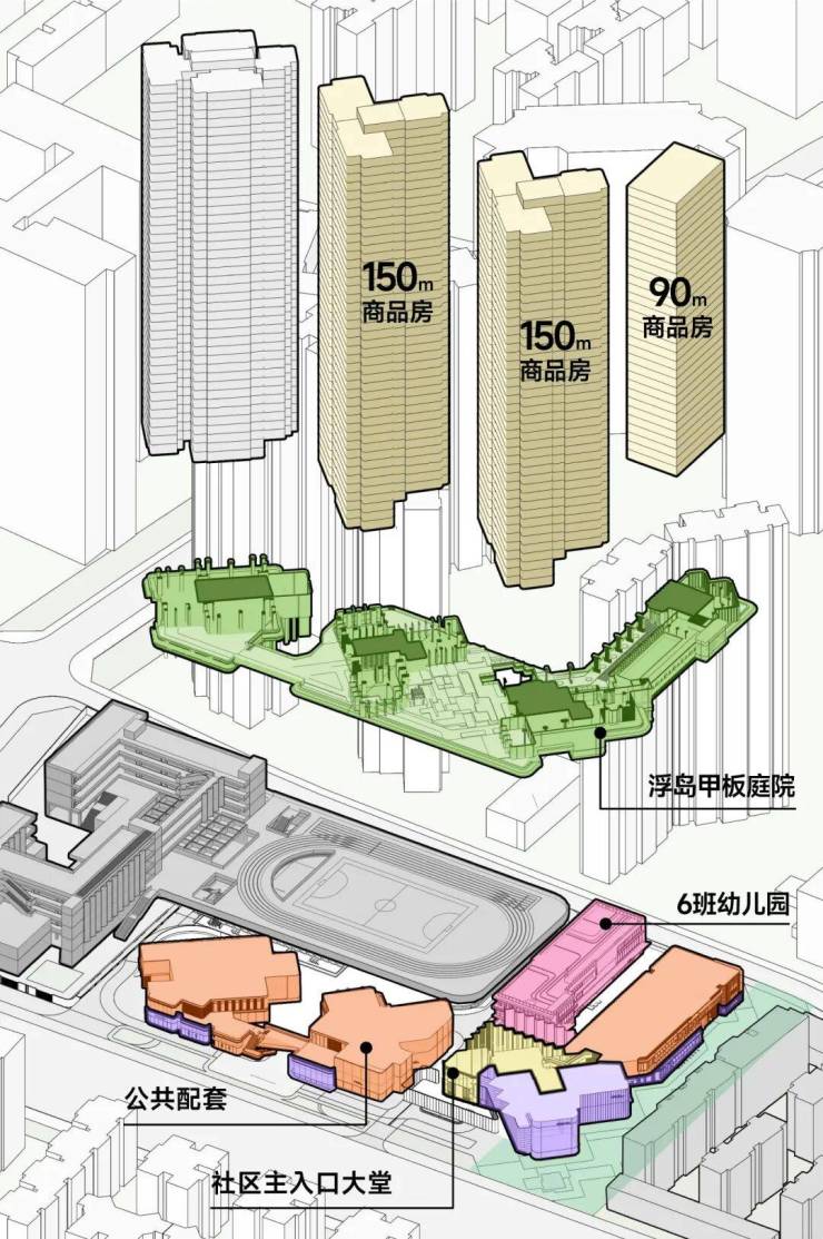 这次「后海招商玺」住宅设计采用“浮岛甲板”设计策略,四栋住宅落于甲板之上,独享甲板庭院花园。进而形成超级社区底盘 + 浮岛绿化甲板的垂直共生人居标杆。