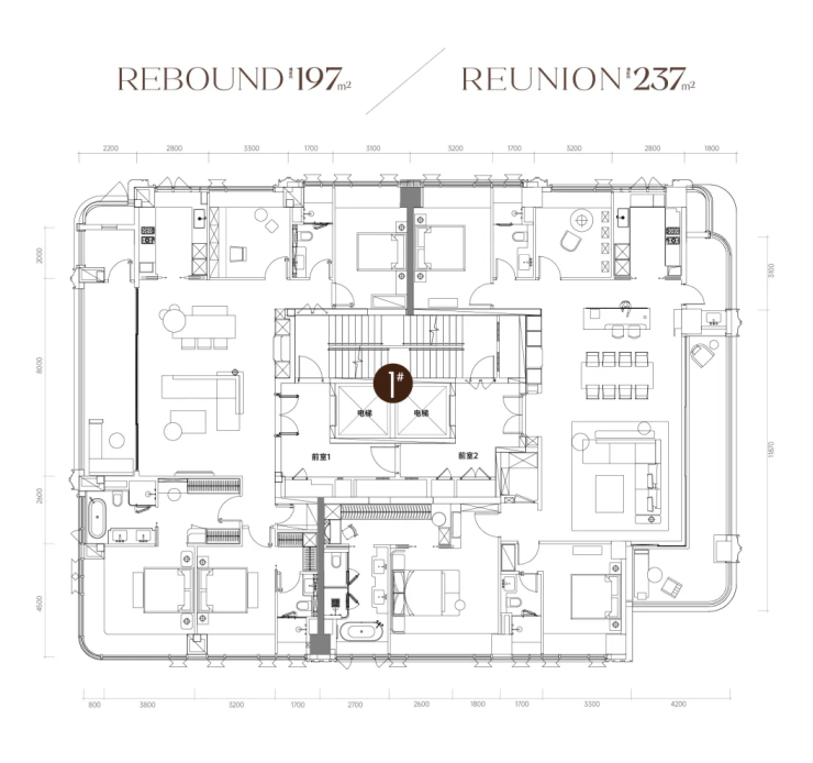 今年首开1栋的小高层住宅,有42套197-237㎡四房大平层。
