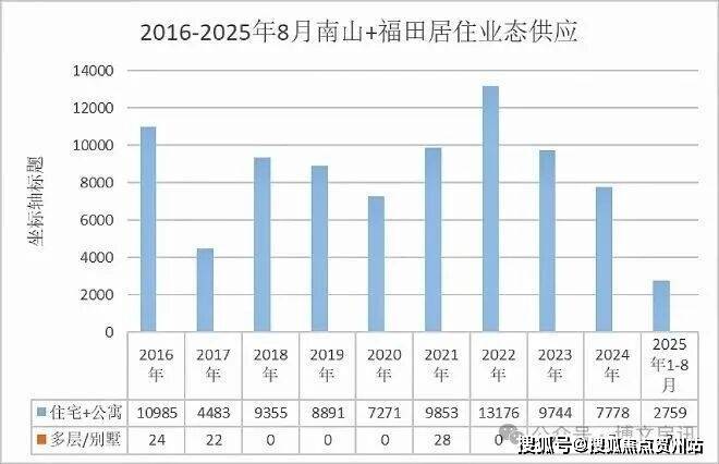 • 南山、福田近10年,别墅供应仅88套,占比居住类物业的0.1%