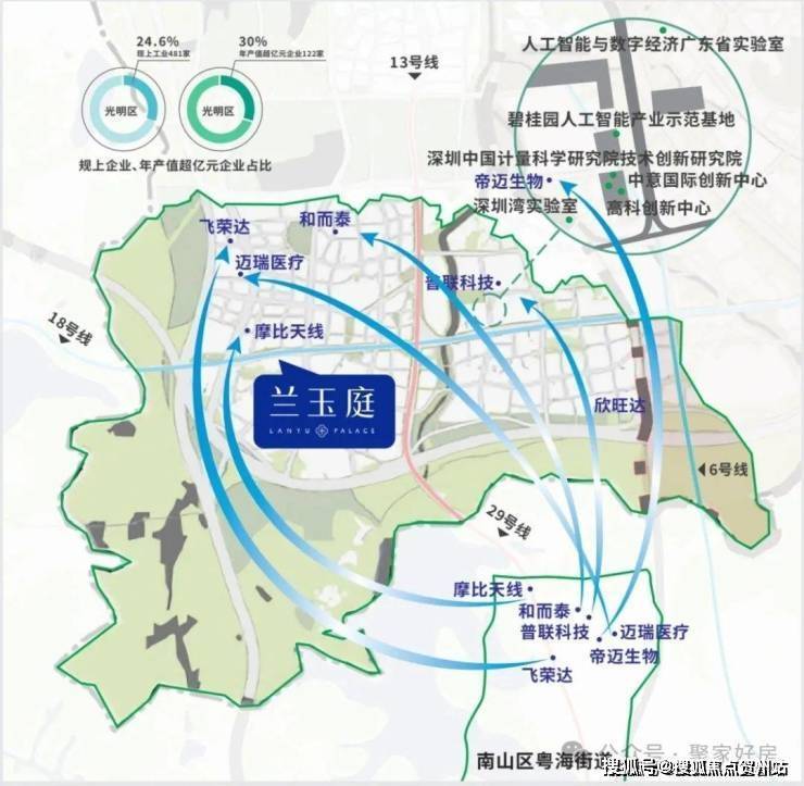 3纵(南光高速、松白路、龙大高速)3横(外环高速、新玉路&光侨路、光明大道)多维路网快速接驳南山、宝安、龙华、福田中心区,高效驰骋粤港澳大湾区。