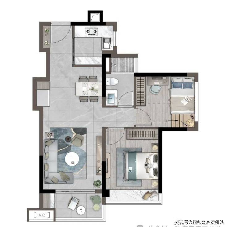 67㎡丨两房两厅一卫:客厅带南向大阳台;主次卧均赠送大飘窗