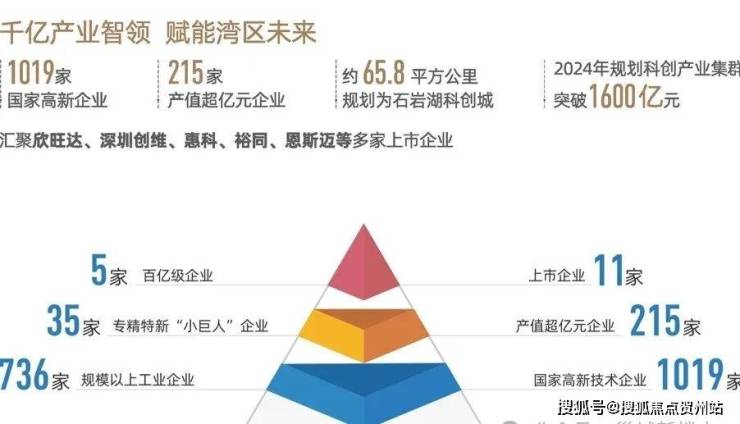 石岩科创城(规划面积65.8万平方公里)汇聚高端科技资源,驱动产业升级,形成产业集群效应,成为推动区域经济高质量发展的关键引擎。在2024年已汇集超过1019家国家高新技术企业,拥有215家产值超亿元企业,已汇聚欣旺达、深圳创维、惠科、裕同、恩斯迈等11家上市企业,规划科创产业集群突破1600亿元。