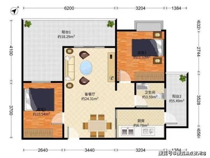 户型:2房2厅,赠送超大阳台(可改小3房2卫)