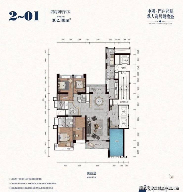 高使用率大平层豪宅,3.3米奢华层高,非凡客厅开间,尺度超然海上