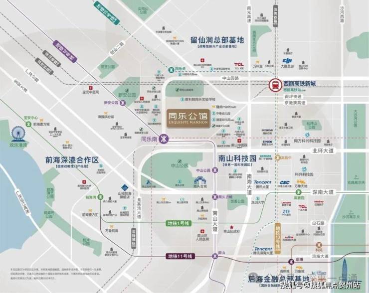 项目周边聚集深圳头部产业资源:西侧为科技园(腾讯、大疆等科技企业总部),东接前海金融中心,南靠蛇口自贸区,北邻留仙洞战略性新兴产业总部基地。区域内以高新技术、金融、总部经济为主导,吸引大量科技从业者及金融精英,形成高净值人群聚集效应。同乐片区未来或承接南山产业外溢,成为职住平衡的重要节点。