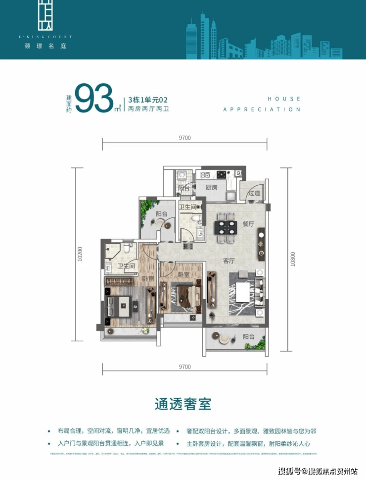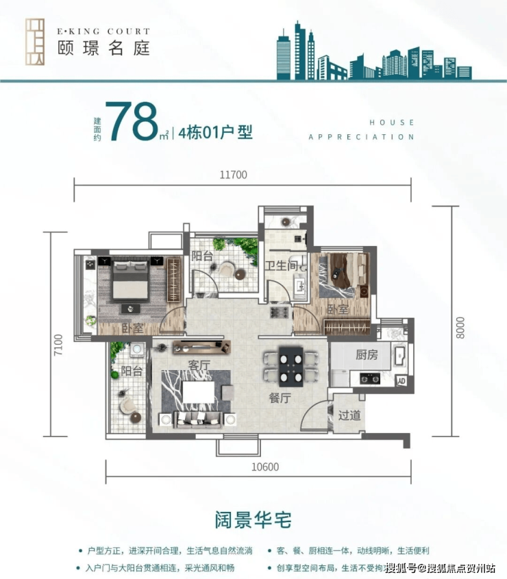 全景阳台,客餐厅一体化设计,营造显赫之感