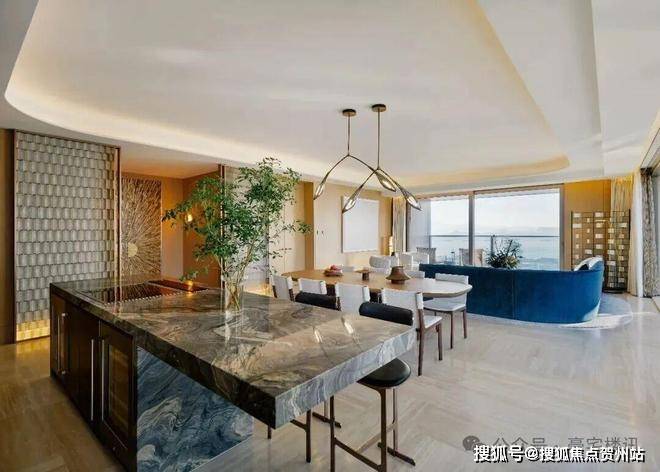客餐厅逾11米宽幕玻璃景观面,将深超总的都市谧境与湿地的层翠,悉数纳入日常画幅。中岛以整块“丝绸之路”奢石铺就,磅礴的纹理与窗外潮汐形成无声对话。