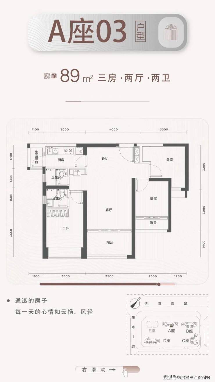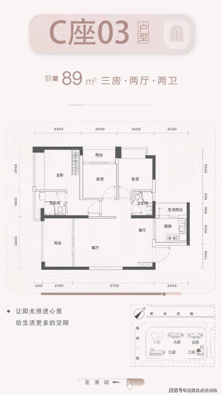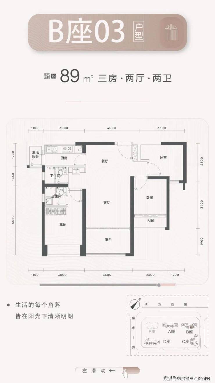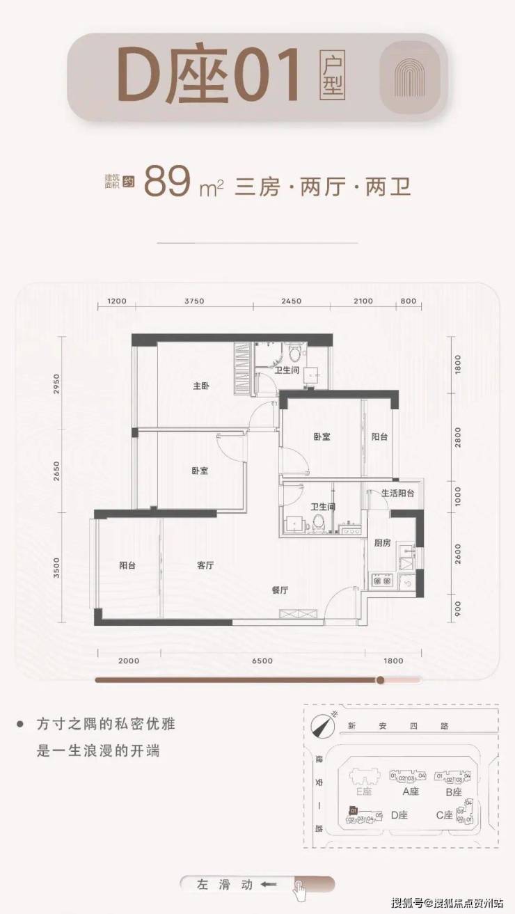 (1)89㎡三房两卫,折后总价660万起,折后单价7.4万;
