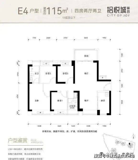 其中115㎡与126㎡外形结构与内部功能间布局基本一致,126㎡户型可看作是115㎡户型的放大版,都是竖厅、动静分区的,居住舒适性、实用性、通透性、静溢性各方面都比较好。