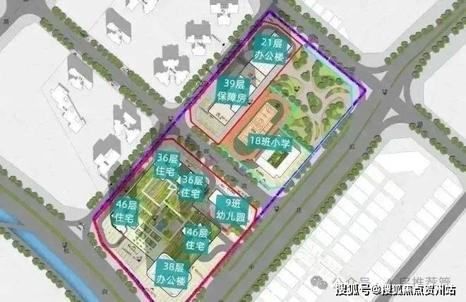 自带社区幼儿园,东北面规划教育设施用地(18班小学);