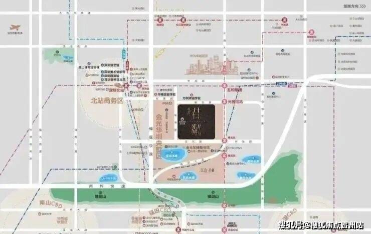①双枢纽(深圳北站+五和站),1小时无缝对接大湾区;五和站城际枢纽,5/10号线及规划中的深大、深惠、深广中轴城际。