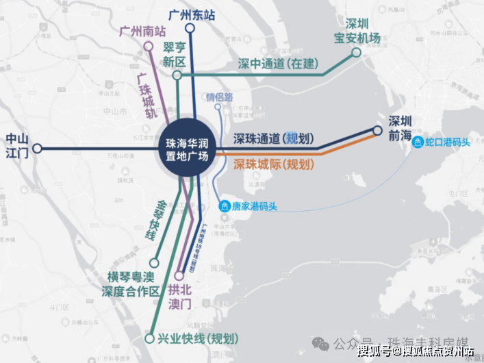 高品质住宅项目海湾润府立于湾区枢纽,享全维交通体系。一站通湾区:珠海北站,双快线达主城:金琴快线、兴业快线(在建)