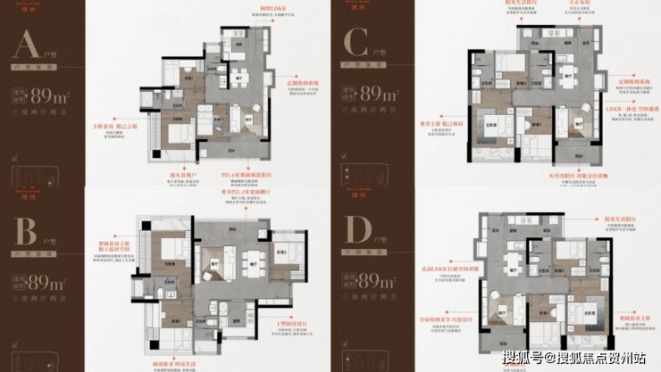 项目主推 89㎡三房两卫 和 115㎡四房 两大精装主力户型,通过巧妙设计(凸窗赠送、阳台改造等),使用率高达85%-98%,远超市场平均水平(约75%),真正做到“小面积,大享受”。