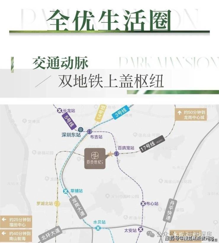 百合世纪广场紧邻地铁5号线百鸽笼站(步行约100米),且未来规划有17号线罗岗站约450米在此交汇,形成双地铁上盖优势,通过地铁5号线,1站可换乘3/14号线,4站直达福田核心区,7站快速通达深圳北站,高效串联南山、前海等区域。