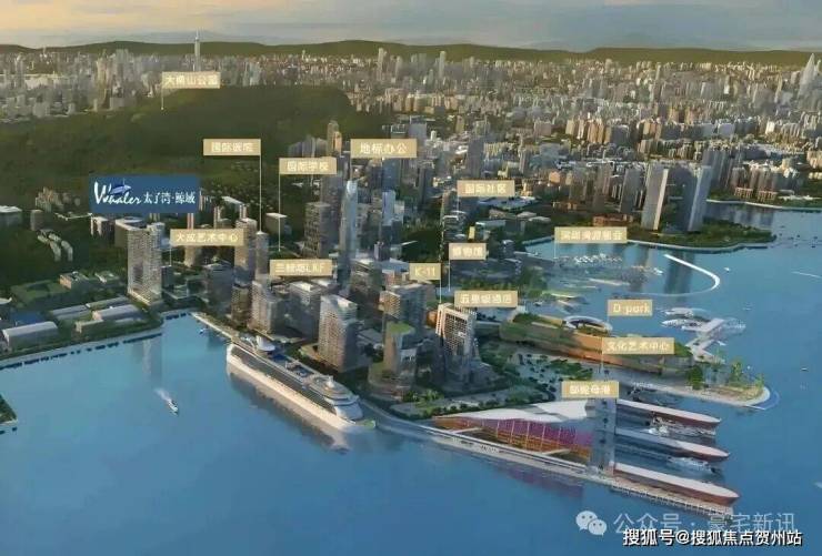 太子湾片区总建筑面积约170万㎡,以“一湾三坊城中城”概念规划,融合“居住坊”、“商业坊”、“港务坊”三大功能区。项目坐享四大国家级战略叠加优势: