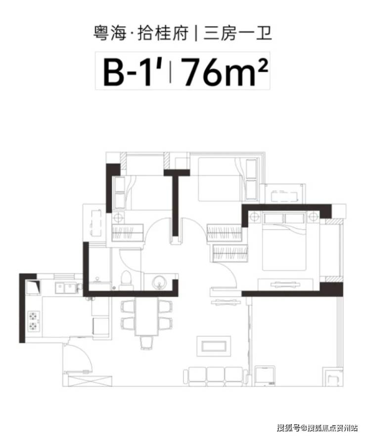 (2)三房:约77㎡(最适用小面积)、90㎡(区域最舒适刚改户型);