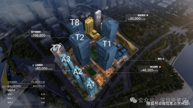 项目总体量约40万㎡,涵盖6栋写字楼、3栋公寓、1栋酒店及约5万㎡高端商业。