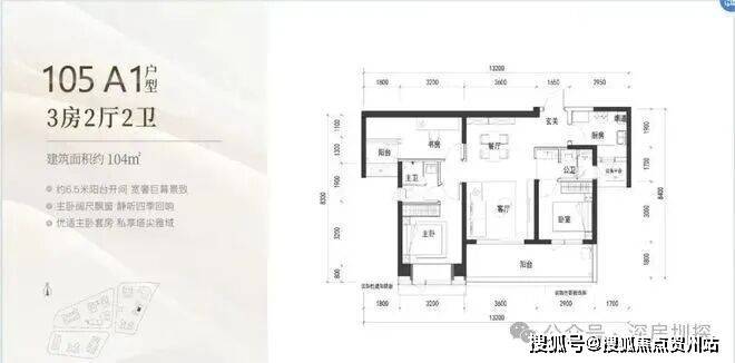 新规户型得房率高达90%,105㎡户型实际使用面积相当于传统120㎡。
