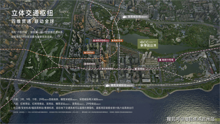 交通上无缝衔接地铁9号线深湾站,并规划接入多条城际线路,形成深港半小时生活圈。