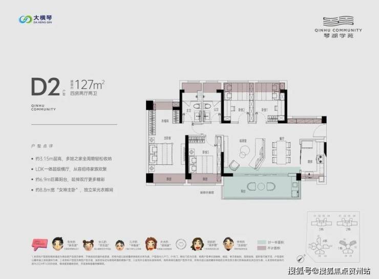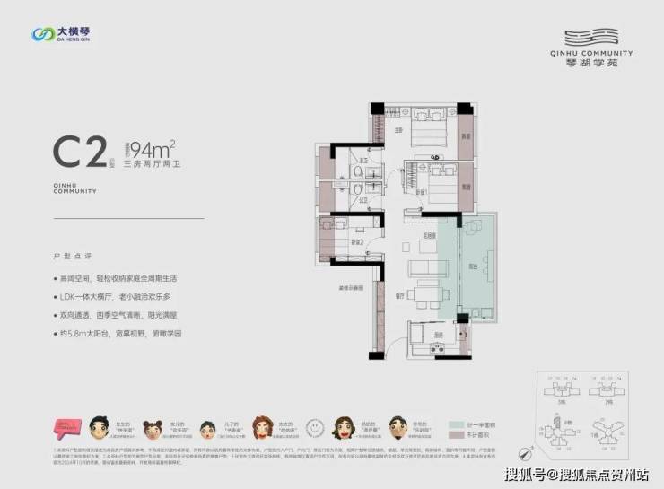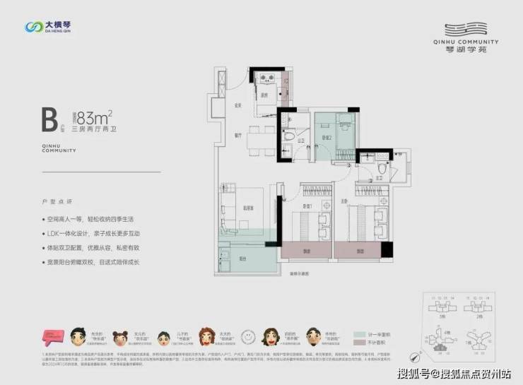 总的来说,作为大横琴的首个项目,琴湖学苑的户型在湖心路来说相对不错,尤其是几个横厅户型,连接客厅和次卧,采光通风、景观面等方面都可圈可点。