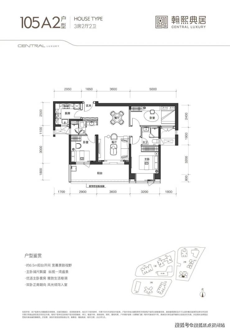 该户型为3房设计+最长6.5米景观阳台+U型厨房,主卧带观景飘窗,满足小家庭通勤储物居住需求。