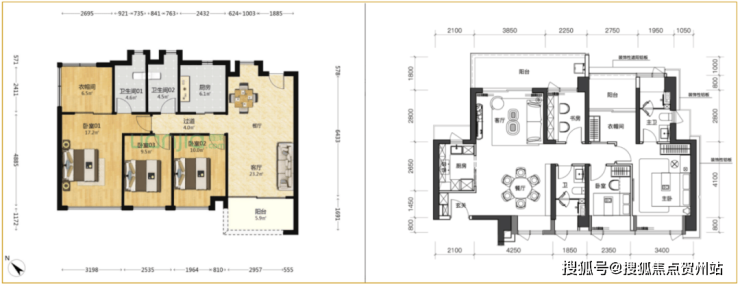 入户玄关+竖厅设计,双龙抱珠格局,主卧套间16㎡,打造男女主人、小孩、老人独立的私人空间同时,将居住私密感拉满。