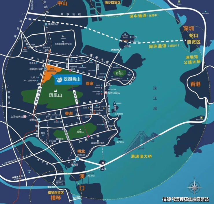 深珠通道(规划中)连通珠海唐家与深圳前海,通车后珠海至深圳的时间可缩短至半小时以内。珠海唐家出口距项目约15分钟。