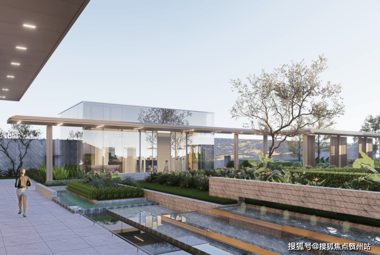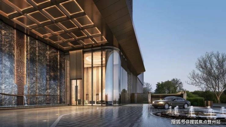 入口大堂、架空层、风雨连廊以“简美东方”为基调,通过形制、材质、色彩细部处理,营造优雅的东方意境。