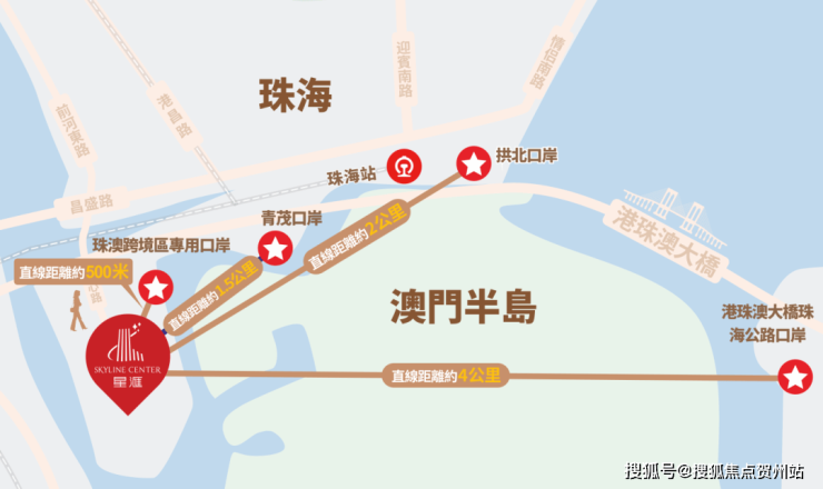 星滙坐落於珠澳跨境區,四大囗岸環繞,步行即到澳門,是珠澳跨境區中多元化臨海甲級商務中心,配SOHO酒店式辦公、寫字楼、商場、会所、空中花園等,享一線海景和澳門城市景觀