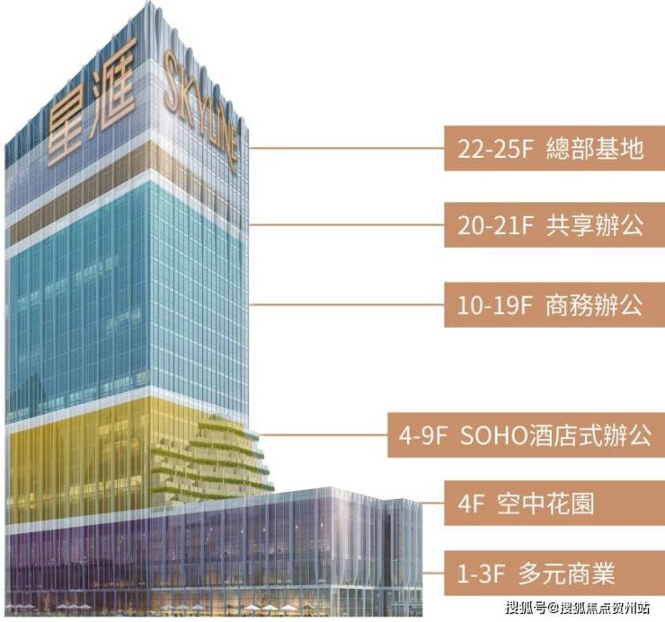 項目為約4.2萬m²的商務大厦,提供SOHO式辦公、商務辦公、共享辦公等多元辦公空間,盡享一線海景和澳門城市景觀。專案並配带豐盛業態的商場和配套,滿足一站式商務休閒生活需求。