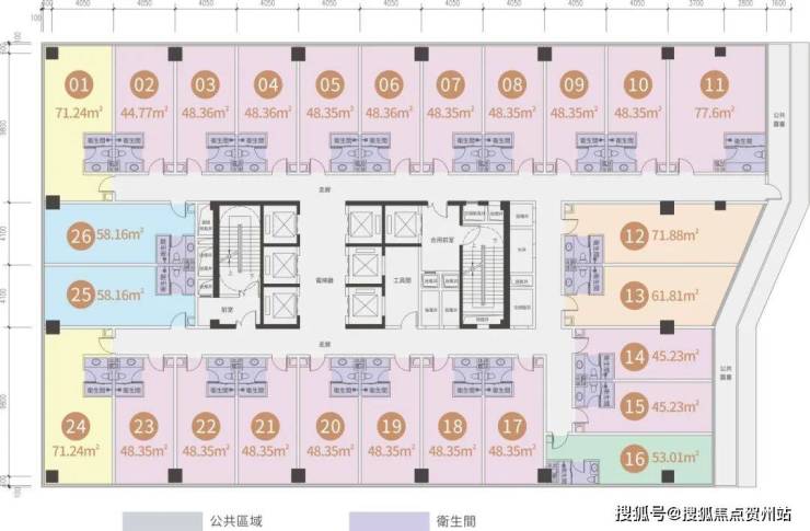 首推建面约49㎡SOHO酒店式辦公,自带獨立街生間,享獨立入戶大堂及專用電梯,集辦公、休、自用和出租等多元化功能於一體。