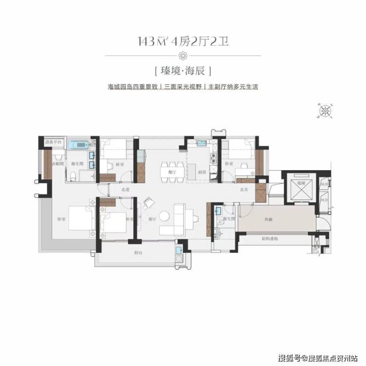 建面约143㎡横厅户型: