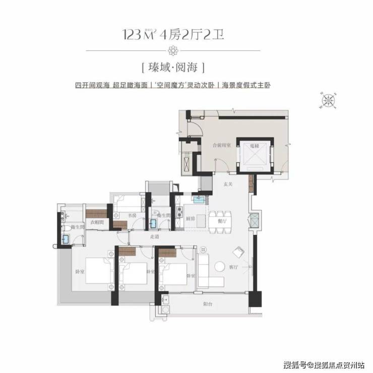 而建面约123㎡的次低门槛户型,更是让人惊叹,居然打造成为了整个小区“含海量”最高的户型。